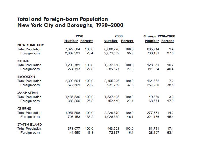 (Source: The Newest New Yorkers 2000, produced by the Department of City Planning of New York City)